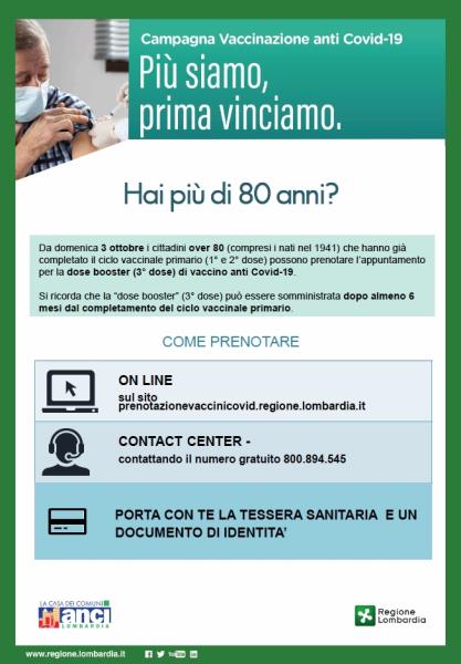 Informativa e modalità di prenotazione per la Somministrazione della III dose “booster” fra i cittadini over 80.