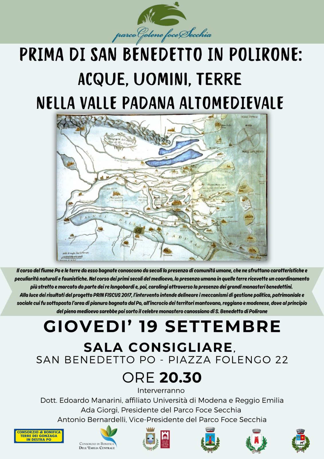 Giovedì 19 SETTEMBRE ORE 20.30 presso la sala Consigliare a San Benedetto Po in Piazza T. Folengo, 22.